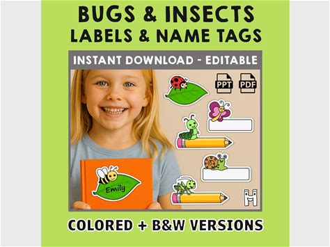 Bugs Insects Name Tags Classroom Labels Animal Spring Editable Files Powerpoint PDF - Instant Download