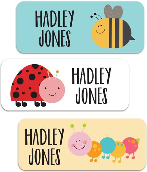 30 Personalized Name Labels, Cute Bug Stickers, Ladybug, Caterpillar, Bee | Waterproof Labels For School, Camp And Daycare