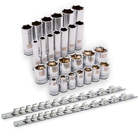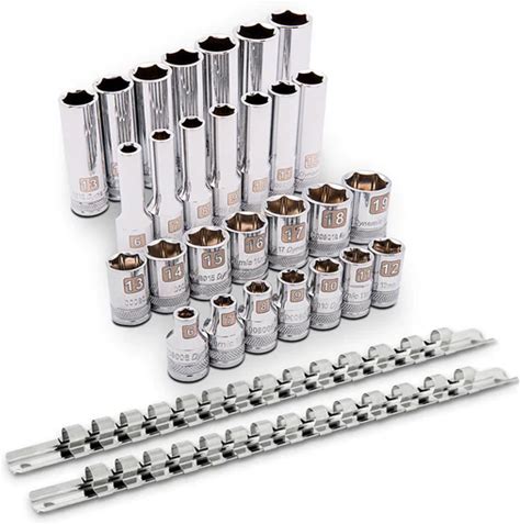 Dynamic Tools 3/8in Drive 28 Piece 6 Point Mirror Chrome Regular & Deep Length Metric Set D106006