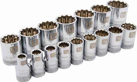 Dynamic 1/2" Drive 16Pc 12-Point Standard SAE Socket Set, 3/8" - 1-5/16" By Woodcraft