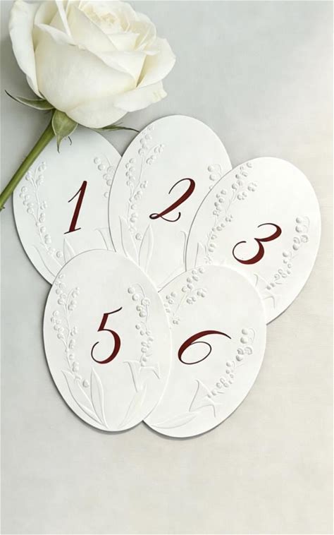 Embossed Lily Of The Valley Wedding Table Numbers, Set Of 6