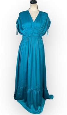 French Connection Audrey Dress Women's 6 Blue Satin Maxi V-Neck